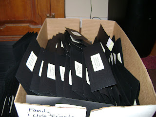 (This is one of the 3 boxes I have finished, I'm waiting on the ribbon to come in on Friday to finish up the next couple hundred of invitations - fun!?)